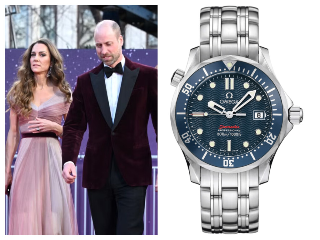 En su muñeca, llevó una pieza de Omega, un reloj que combina elegancia y precisión de una manera impresionante. Con una caja de 41.5 mm, incorpora elementos característicos de la firma como las asas en forma de lira. La esfera, elaborada en azul marino, está decorado con un patrón de ondas en toda su superficie.