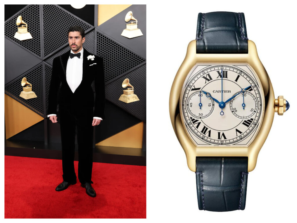 “Benito”-como se le conoce al cantante- lució un tuxedo negro de Schiaparelli, y piezas de Cartier. Por ejemplo, piezas como el reloj de la colección Tortué en oro amarillo y anillo Panthere y gemelos en oro amarillo.