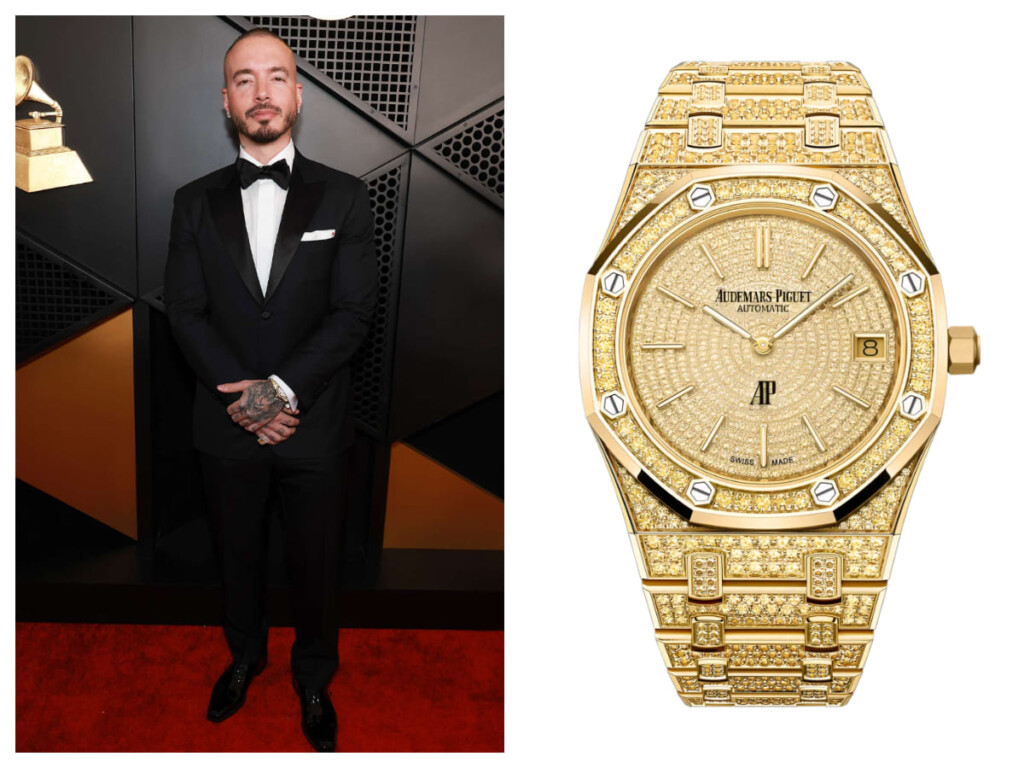 Otro latino en la ceremonia fue el colombiano J Balvin. El interprete de “Con Altura” lució un traje negro firmado por Dior, que complementó con un reloj de Audemars Piguet. Hablamos de un Royal Oak Jumbo Extra Thin, que combina oro 18 kilates y zafiros amarillos de talla brillante.