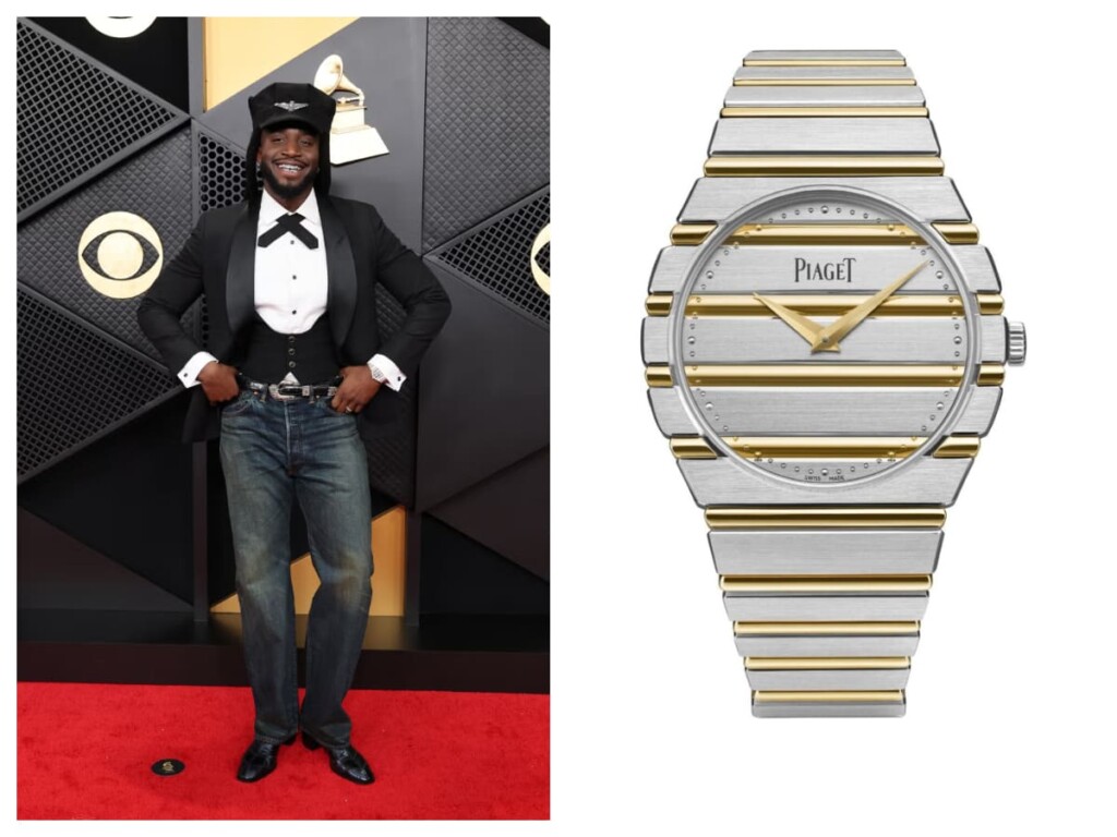 Una de los relojes que podemos tomar como ejemplo es el usado por el cantante norteamericano Shaboozey. Nominado en las categorías country mejor interpretación solista de música grupo y mejor interpretación de duo o banda country, lució un atuendo bastante original firmado por Ralph Lauren y el toque Western de RRL Denim.