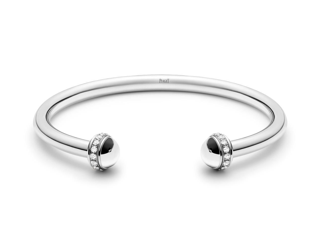 2.- Brazaletes Piaget Possession en oro blanco con detalle de diamantes engastados.