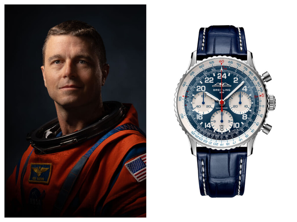 Reid Wiseman, el comandante de Artemis II, también está claramente inmerso en la tradición de los relojes espaciales a nivel personal. Antes de despegar, lo fotografiaron combinando su traje de vuelo con un Breitling Navitimer Cosmonaute.