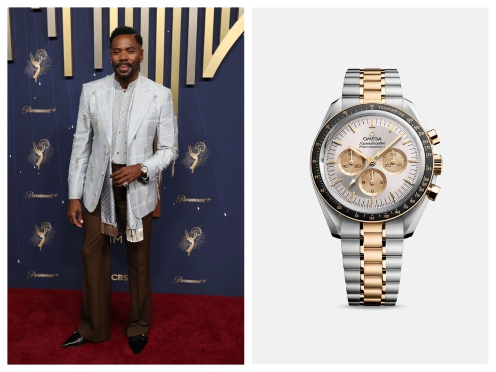 Uno de los nominados de la noche como mejor actor de reparto, Colman Domingo, complementó su look de Valentino con un reloj Omega Speedmaster Moonwatch. Un modelo bicolor de 42 mm, realizado en acero noble y oro Moonshine de 18 quilates.