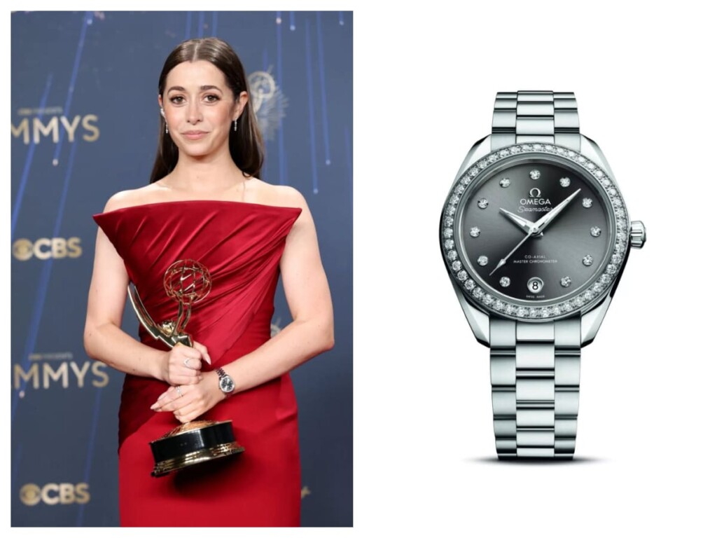 Otra que eligió a Omega fue la actriz ganadora como mejor actriz en una serie limitada por su papel en El Pingüino, Cristin Milloti. La estrella combinó su vestido rojo de Danielle Frankel, con joyas de Anita Ko y un Omega Seamaster Aqua Terra de 30 mm elaborado en acero noble.