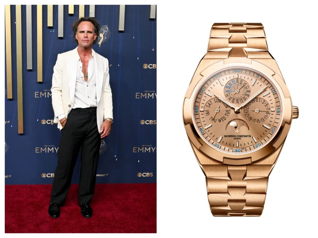 También acudió el actor Walton Goggins, nominado como mejor actor de reparto por White Lotus, luciendo un traje blanco y negro de Louis Vuitton y joyas de David Yurman.