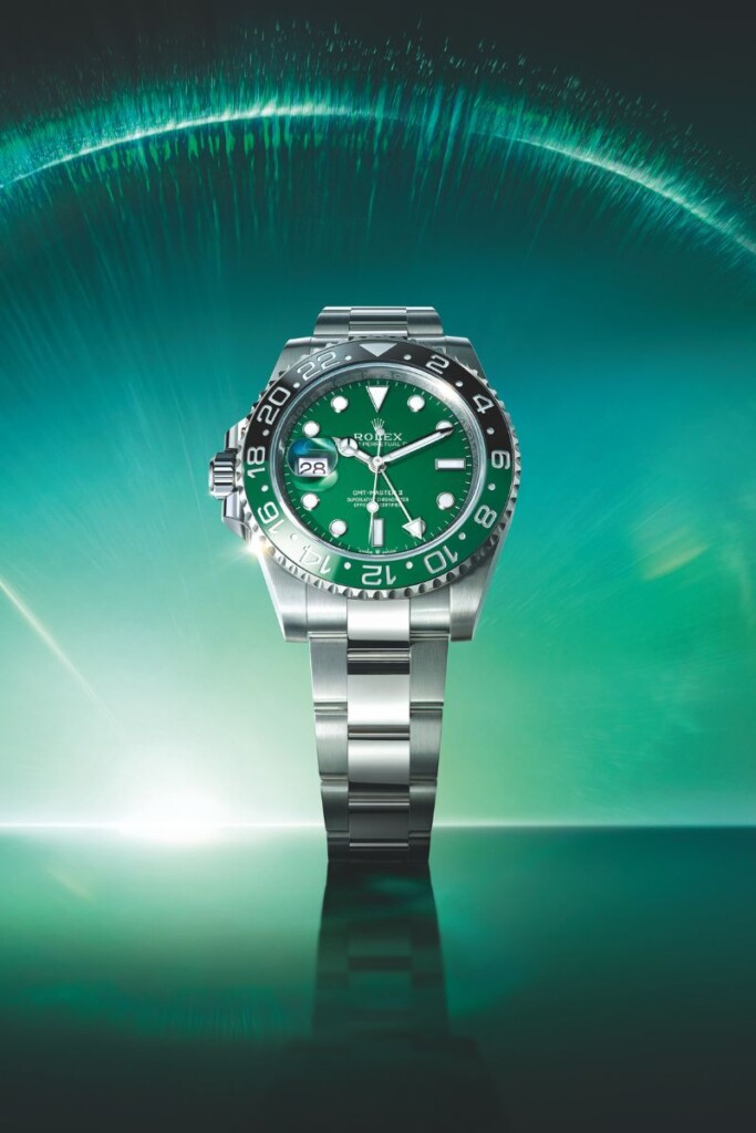 Se celebra con dos modelos en metales preciosos. El GMT en oro blanco estrena un bisel cerámico verde, una primicia para Rolex. Pero aún más llamativo es el GMT en oro Everose, que luce un inusual esfera de piedra tiger iron. Este último es el segundo en la historia de esta colección, en incorporar una esfera de piedra.